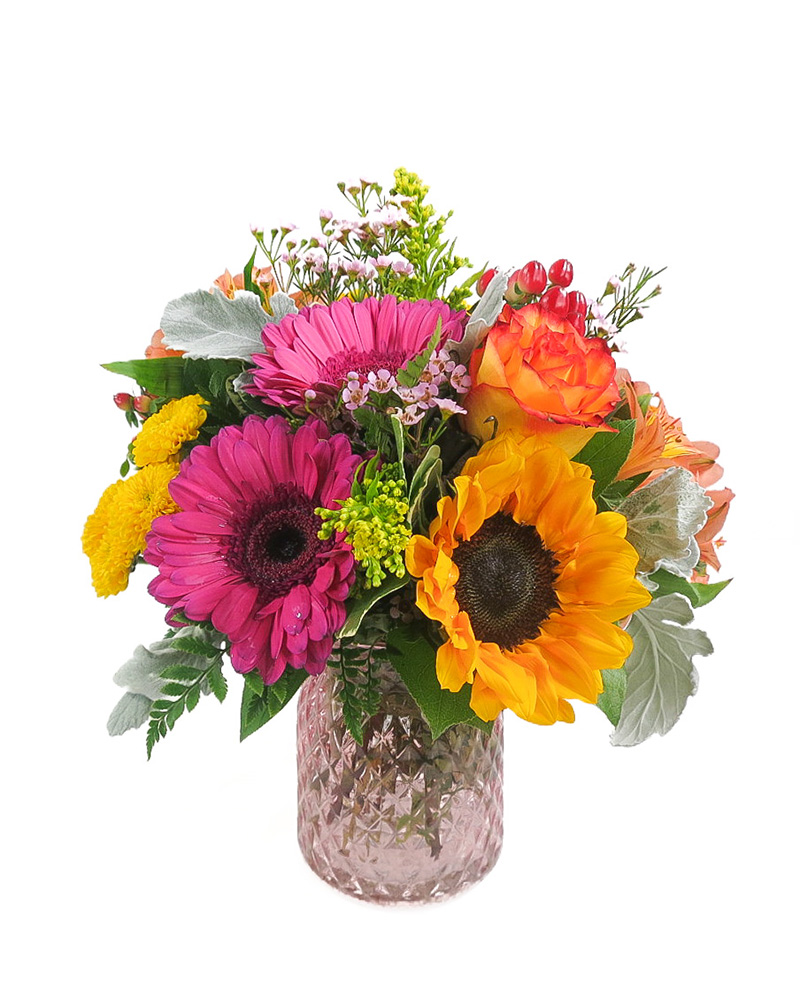 | Vase Size | 9" Spring Garden Glass Vase, Arrangement is approximately 18 inches tall by 10 inches wide |
